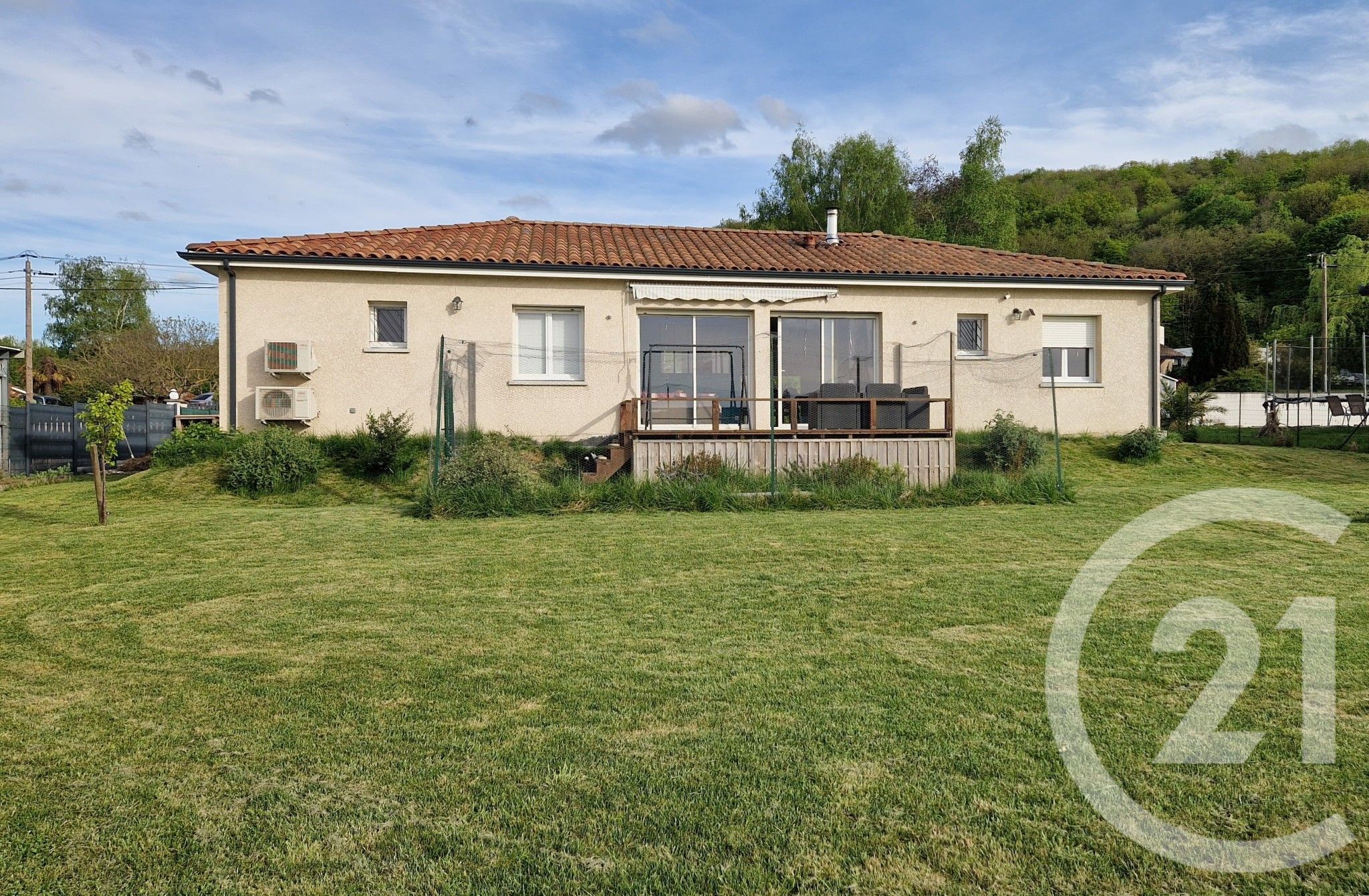 Dès l'entrée vous apprécierez la pièce de vie lumineuse et agréable donnant accès à une belle terrasse en bois vous offrant une vue dégagée sur la plaine environnante.